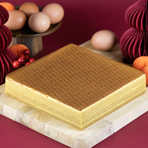 Lovingly handmade for Chinese New Year, our Kueh Lapis is crafted one golden layer at a time — a slow, meticulous process that takes over 4 hours per cake. Each layer is baked individually to achieve its signature softness and buttery depth, embodying the festive spirit and the tradition of patience and prosperity. Inspired by the idiom “步步高升” — which means “rising step by step” — every layer is a wish for growth, success, and good fortune in the year ahead. Available during CNY period only.